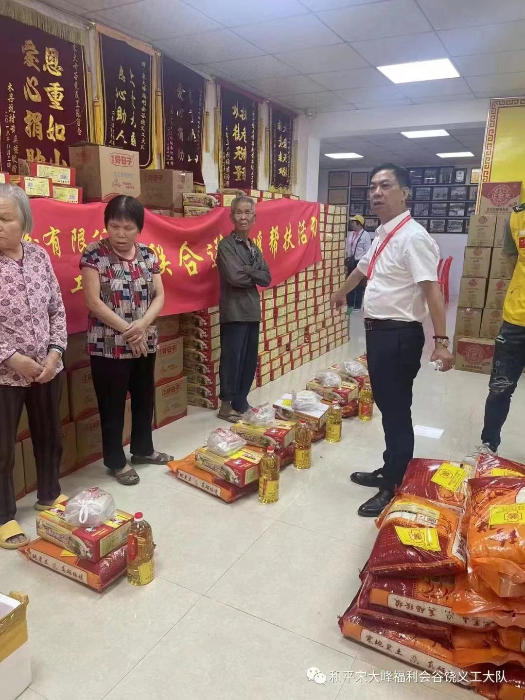 2023年5月2日(农历三月十三日)是汕头市潮阳区和平宋大峰福利会谷饶义工大队开展帮扶接力心连心志愿服务活动慰问日,在队委会主任陈创龙的带领下,汕头市潮阳区和平宋大峰福利会谷饶义工大队全体义工不怕苦,不怕累,舍小家顾大家积极参加开展每月固定献爱心志愿活动,走进乡村,围绕谷饶镇,铜盂镇,关埠镇28个乡村,233户送去爱心物资:东北大米20斤,食用油1支,方便面1件,猪肉饼3块,到汕头存心善堂养老院慰问养老院老人!大米1000斤、方便面50件.猪肉饼75块。为他们提供日常生活用品,改善他们的生活条件,使他们充分感受到社会大家庭温暖。